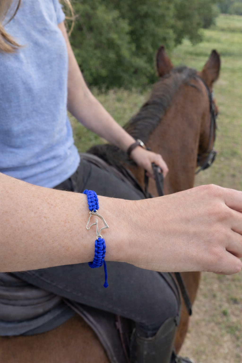 - Con detalle de cabeza de caballo de acero inoxidable.
